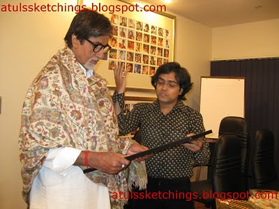 I have been to Mumbai recently on great Hindi poet Shri Harivansh Rai Ji’s birthday, 27th November. He is also the father of star of millennium Shri Amitabh Bachchan Ji. Amitabh Ji calls him ‘Babu Ji’. I took one poem for ‘Babu Ji’ as a birthday present, one poetry for Amitabh Ji himself and one portrait to Aishwarya Ji. She was not in Mumbai that time so I could not gift her through my hand but Amitabh Ji assured me that he would gift her on my behalf. Thank you very much, Amitabh Ji, for your greatness with simplicity. Below is the snap was taken when I was reciting Babu Ji’s poetry to him at his house ‘Janak’ in Mumbai on 27th November.